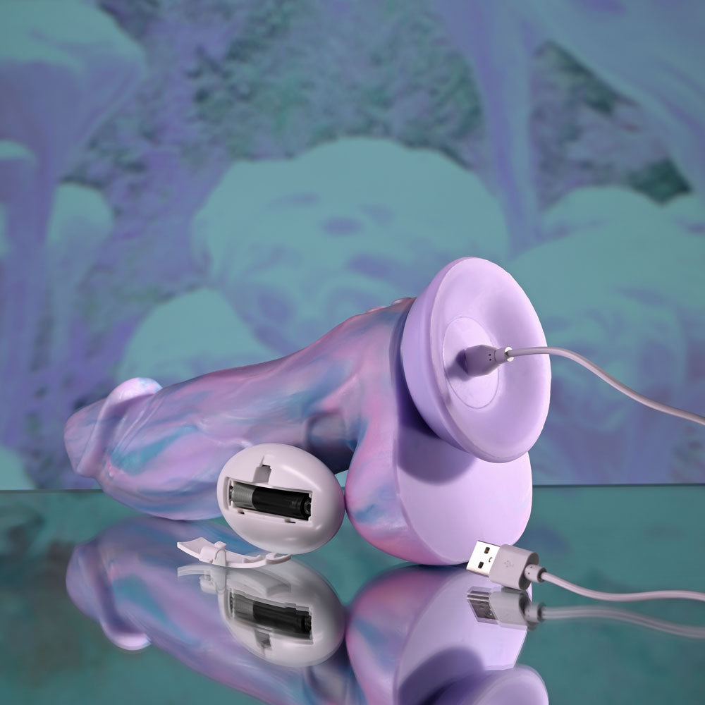 Encounter out of this world girth and power with this large, flexible vibrator that swells to a deeply satisfying thickness. Crafted with multicolour body-safe silicone, this fantasy-inspired vibrator has a realistic crowned tip, chunky balls and a robust suction cup base for stable hands-free pleasure. Try Turbo Mode to instantly reach max intensity when you crave it most.