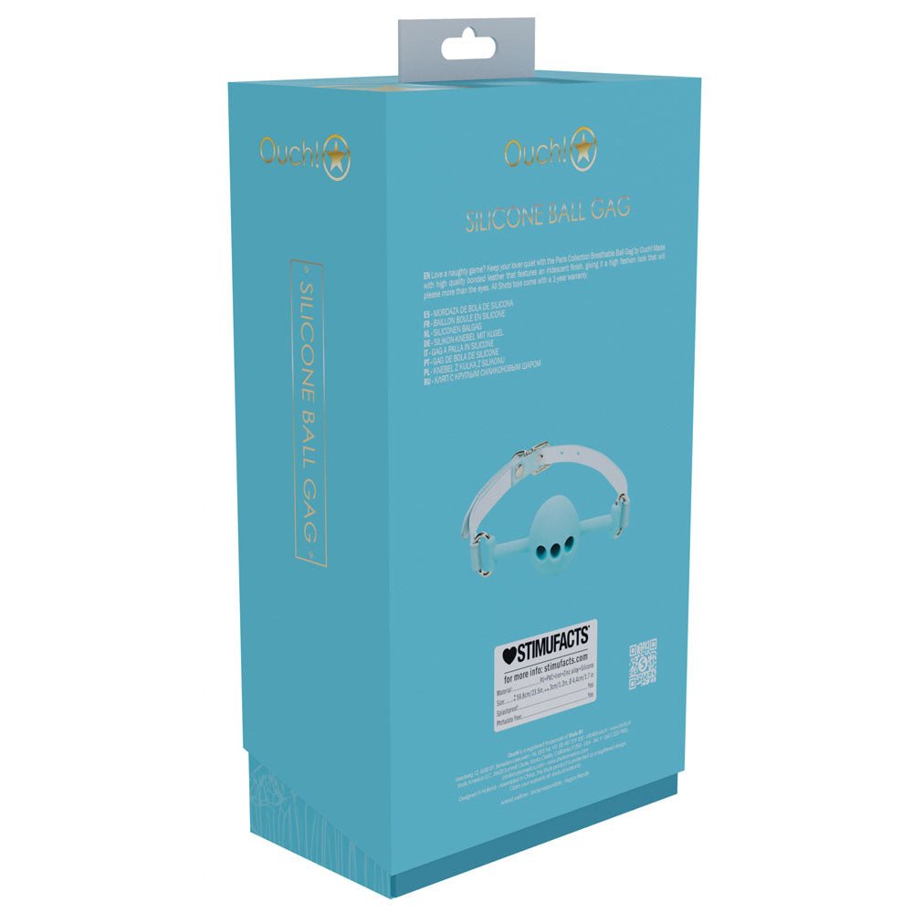 You love a naughty game? Keep you lover quiet with the Paris Collection Breathable Ball Gag by Ouch!. This gag has quality bonded leather adjustable straps for a one size fits all, and features an iridescent finish on its hardware, giving it a high fashion look that is sure to please more than the eye. Use this toy on its own, or in combination with other Ouch! products. All Shots toys come with a 1-year warranty.