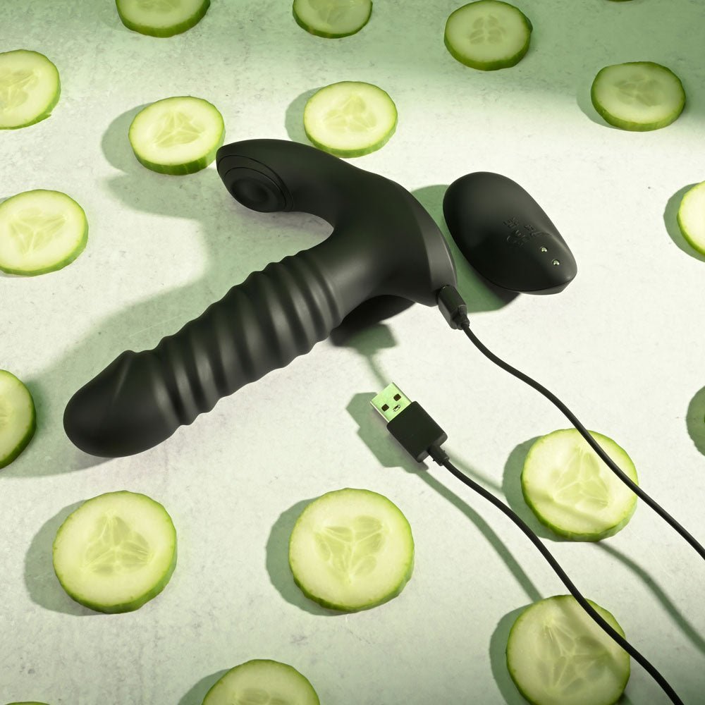 Zero Tolerance STRIKER - Black 16.4 cm USB Rechargeable Thrusting Anal Vibrator with Wireless Remote Control