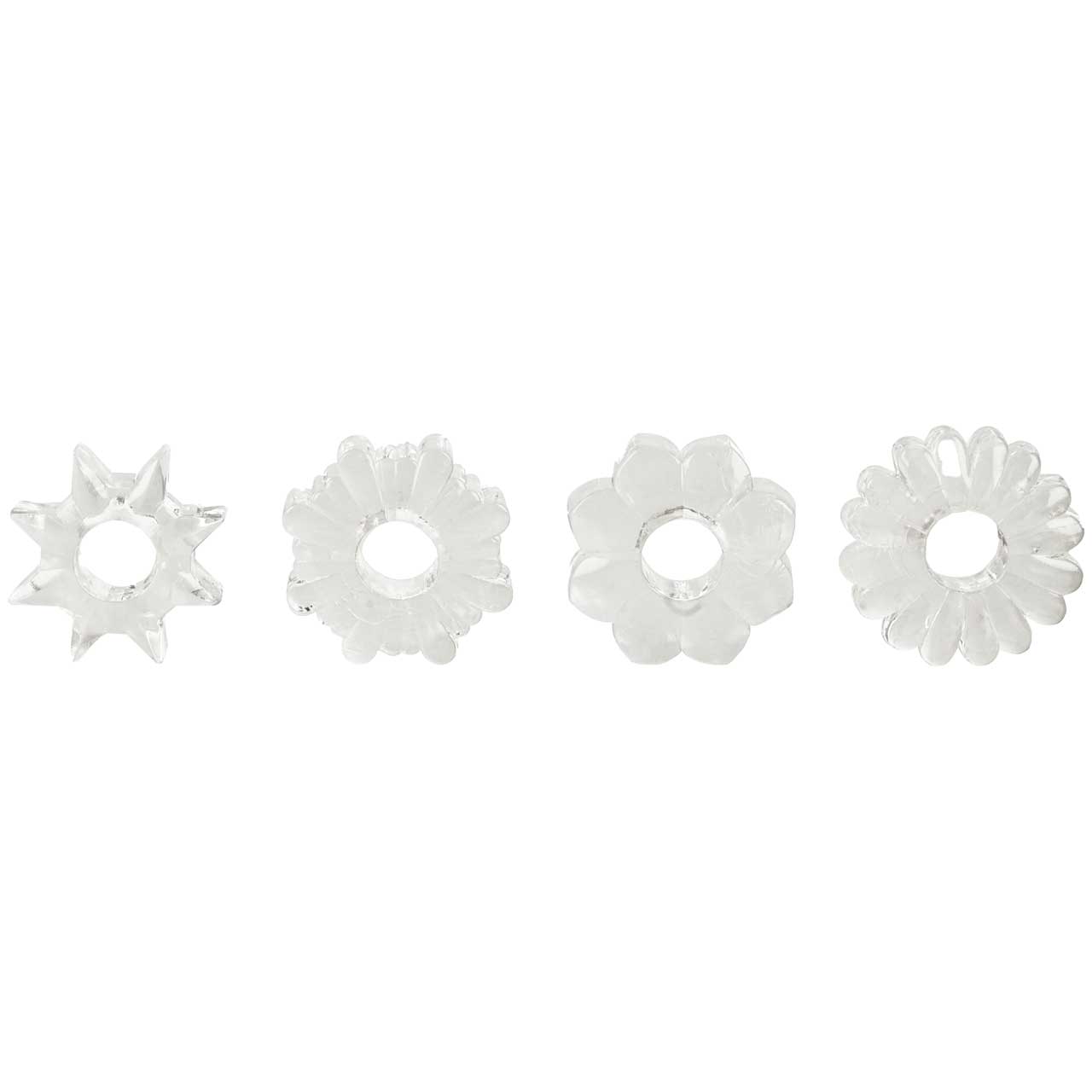 Basic Essentials™ are high-quality, feature-packed products for couples that enhance lovemaking — at an unbeatable price! A terrific addition to any toy collection, our Super Stretchy TPR Enhancers are designed to enhance and stimulate for the ultimate in satiation. Four super stretchy enhancers come in assorted shapes, offering support and increased sensation - the pleasure is all yours.