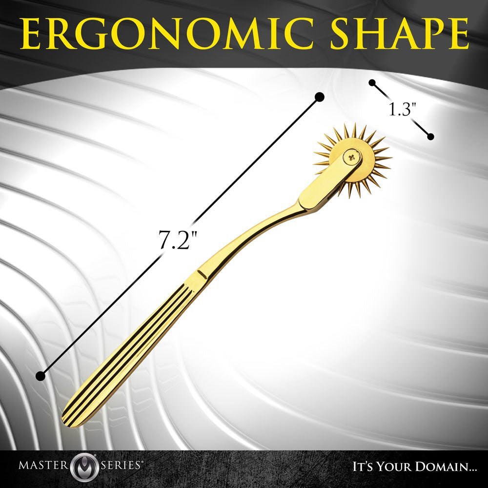 Wake up your partner's senses with this Wartenberg wheel! The shining, golden, wheel of needles are blunt enough to use on the skin but prickly enough to heighten sensation and give them goosebumps across their flesh! Use it during sensation-play and in kinky scenes to add another layer of desire-invoking teasing! The wheel was originally used in the medical industry...